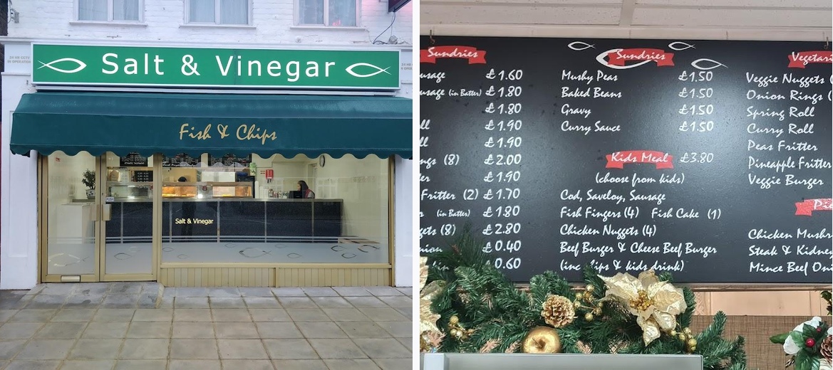 Welcome to Salt & Vinegar, your go-to destination for delicious fish and chips in Ashford! Located at 71 Feltham Rd, we pride ourselves on serving fresh, crispy cod and golden chips at an affordable price range of £1–10. Whether you're dining in, ordering takeaway, or opting for delivery, our casual atmosphere is perfect for lunch or dinner. With vegetarian options and a kids' menu, there's something for everyone. Our friendly owners and wheelchair-accessible seating add to the inviting vibe. Join us for a quick bite or reserve a table to experience the best fish and chips in the area!Customers rave about the quality of cod served here, noting that every piece arrives skinless and perfectly flaky. Freshly made chips often receive praise for their slightly crisp exterior and fluffy interior. The owners’ friendliness comes through in reviews, making the dining experience even more delightful. Unique offerings like pea fritters add a twist that many locals adore, showcasing the shop's creative approach to traditional fare. The cleanliness of the shop and the speed of service also contribute to positive experiences, as guests enjoy hot and fresh food without long waits.